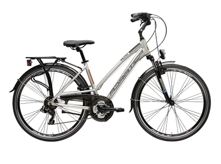 Il telaio in alluminio TRK ALU garantisce leggerezza (solo 15,50 Kg) e resistenza, rendendo la bici facile da manovrare e trasportare. La forcella in acciaio HI-TEN OVAL-TIG assorbe le piccole imperfezioni del manto stradale per una guida più confortevole.