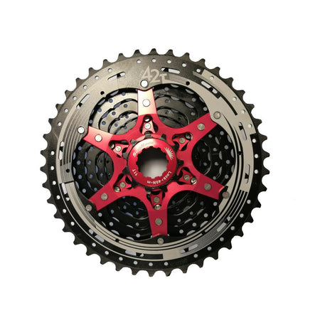 Cassetta MTB 11V x 11/42 Denti Ghiera e Spider Rossi in Alluminio Nero - Compatibile con Corpetto SHIMANO Peso: 425gr SUNRACE