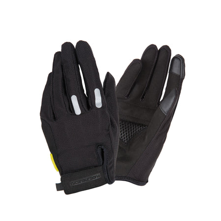 Guanto in tessuto elasticizzato traspirante, con compatibilità touch s creen, stampe rifrangenti e aggancio per luci di sicurezza