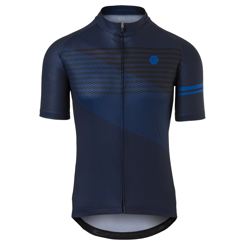 Maglia Striped Sport Uomo Deep Blue - Maniche Corte Slim Fit in 100% P oliestere - Traspirante e 3 Tasche AGU