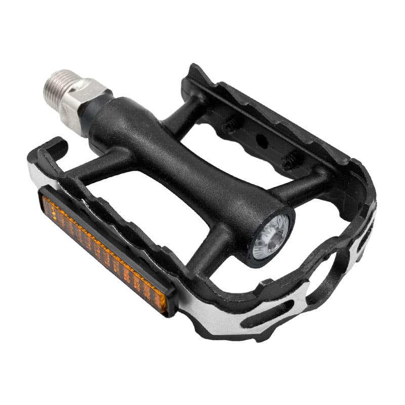 Pedali 105x82x23mm MTB in Alluminio Nero - Perno su Cuscinetti (Box) c on Catadiottri Peso: 265gr/coppia MVTEK