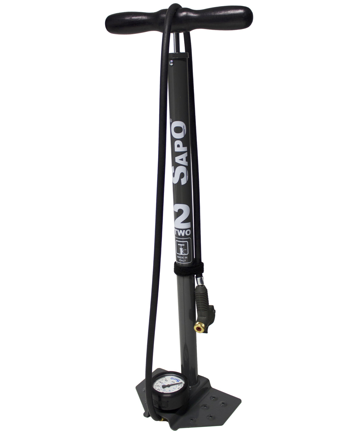 Pompa da pavimento 2TWO con manometro 63mm, protezione in gomma e raccordo a leva grigia c/impugnatura nera 12 bar / 180 psi