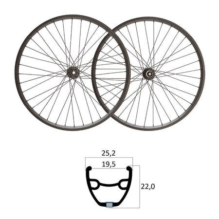Ruote 700 Int: 19,5 Est: 25,2mm GRAVEL Tubeless Ready Mozzo Shimano 9/ 10/11V (Coppia) - Perno Passante 32 Raggi Altezza: 22mm MVTEK