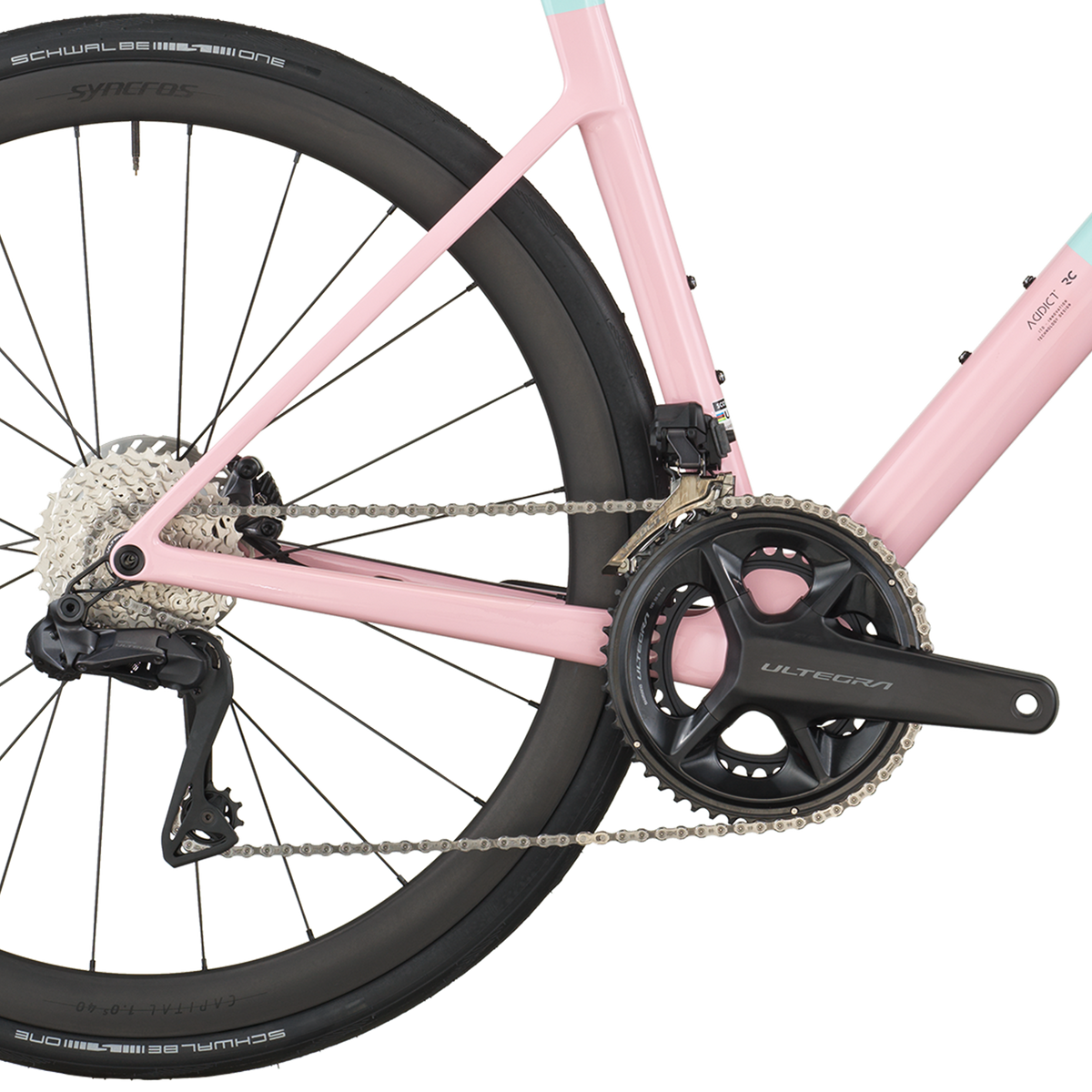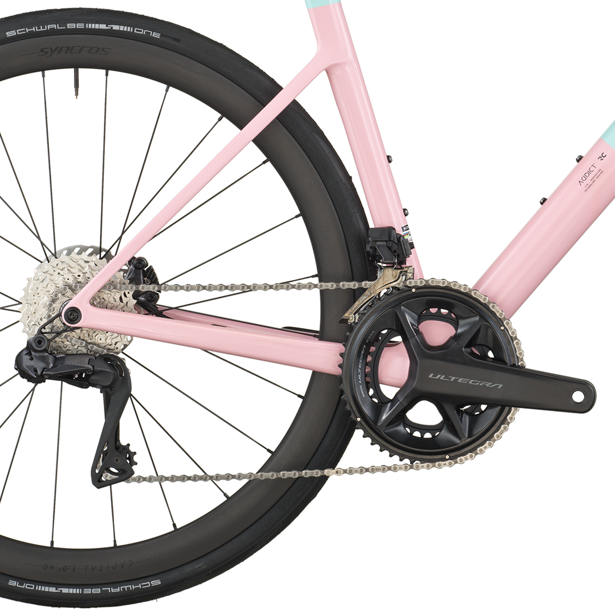 Equipaggiata con il gruppo di punta Shimano Ultegra Di2 a 24 velocità, la Addict RC 10 offre un'esperienza di cambio fluida, istantanea e impeccabile. Affronta ogni dislivello con fiducia grazie alla cassetta 11-34T e alla guarnitura compatta 52x36T, sapendo che il cambio elettronico non ti deluderà mai, indipendentemente dalla pressione.
